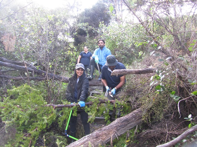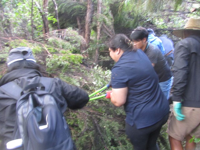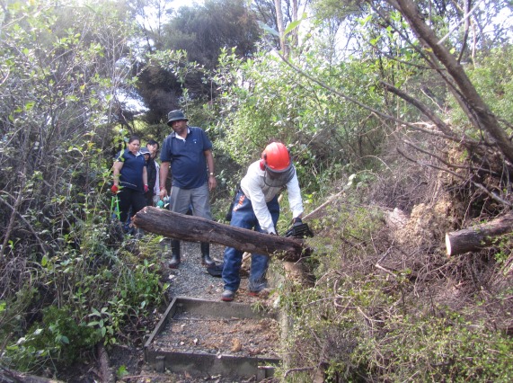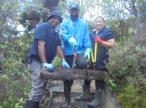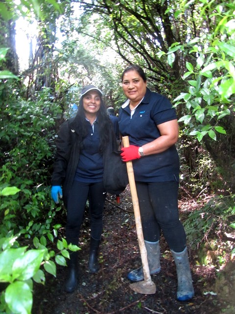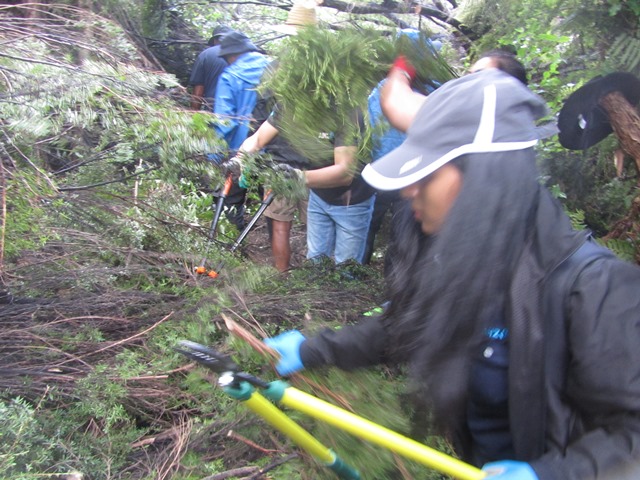 The team worked very hard and helped clear 600 metres of walking track and definitely managed the biggest problem areas. Other teams will help us clear more of the tracks. There are some areas where we will need professional arborists to remove some of the 150+ year old big totara and kahikatea trees in the gully that unfortunately have fallen and blocked access to the Ruru and Taraire tracks.