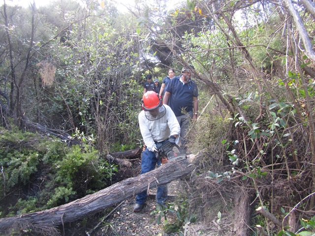 The plan was for an advance group to move up the track and clear major blockages and then the rest of the team would follow, trimming and clearing the track as much as possible.