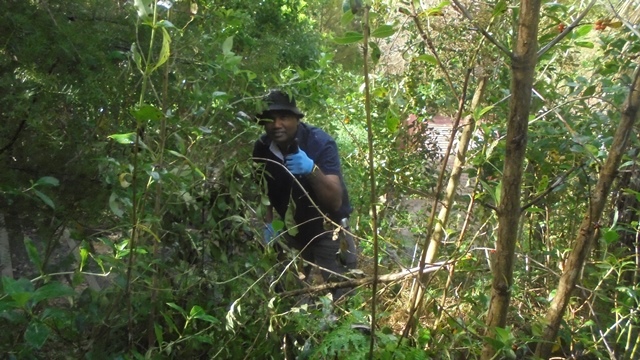Some branches were too big to cut out by hand so Thomas used the chainsaw to cut them down to manageable size.