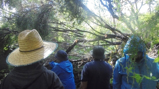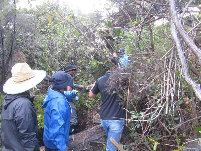 The first task was to assess the area for safety to ensure that there was no danger of falling limbs or further movement. The team then had to determine the best way to tackle the obstacle and whether to use loppers, saws, machete or another approach.