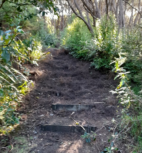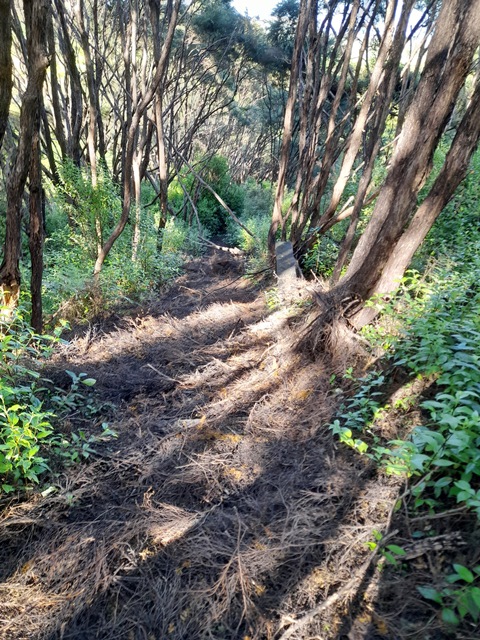 The service road connects to the Tanekaha track which presented a different set of challenges. The track was covered with branches and twigs and there were some larger trees down as well.
