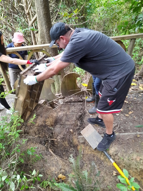 They then moved over to the wetlands boardwalk, clearing vegetation and releasing small trees.