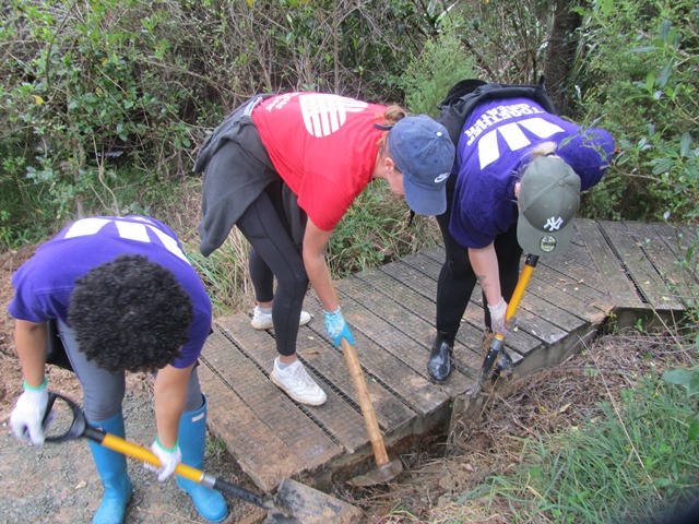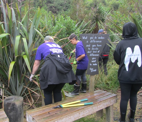 They then moved to Wahi Mautauranga where we had a big slip after the January rain storm. We are still in the process of clearing the slip. This is one of the main areas where events and educational sessions are held and there was some trimming and weeding that needed to be done as we restore the area.