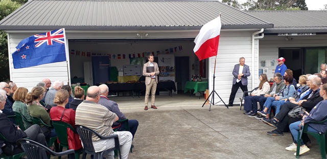 Also in attendance were Liam Finnigan from the New Zealand Ministry of Foreign Affairs & Trade, representatives from the Auckland Consular Corps, Rodney Local Board, NZ Institute of International Affairs, the World Affairs Forum, the New Zealand Europe Business Council Inc, the Polish Heritage Trust Museum, leaders of the Polish community organizations from Auckland, Bay of Islands, Tauranga, Wellington and Christchurch. Descendants of the Children of Pahiatua were also amongst the Polish community members present.