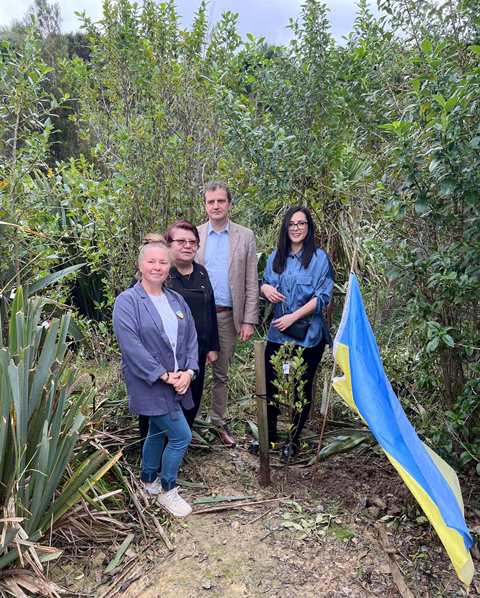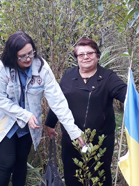 A tree to celebrate Mahi for Ukraine was planted by Kate Turska and Olga Vorobey.