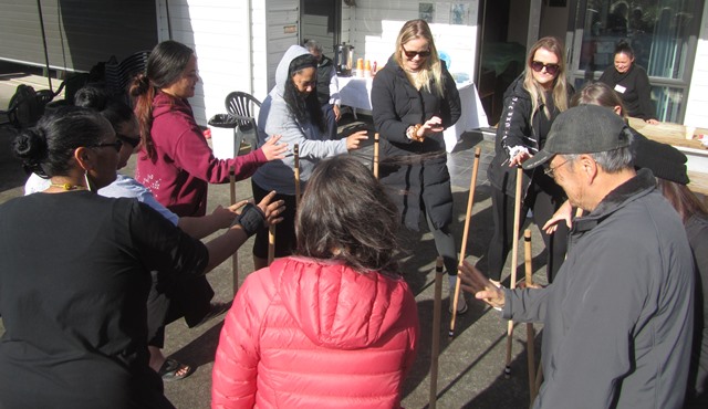 Rewana also led the participants in a concentration and team building activity using rākau. It was a challenging but also a really fun activity and generated lots of laughter.