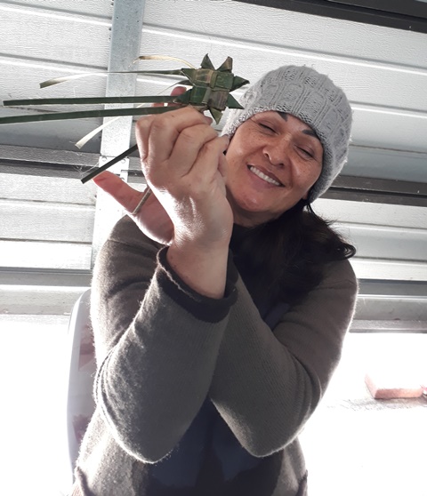 Rita gave each participant some harakeke and taught them how to make Matariki stars.