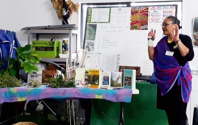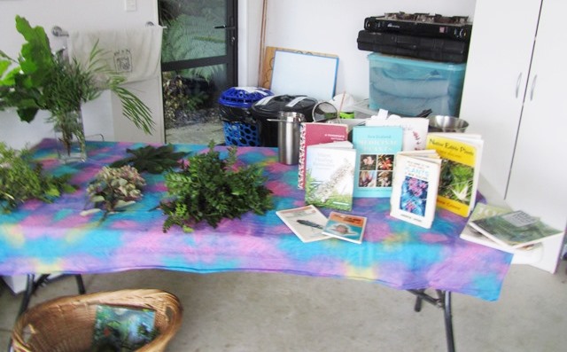 On the morning of the session, Marion set up her materials. She had brought reference books as well as samples of some Rongoa plants the participants might not encounter at CUE Haven.