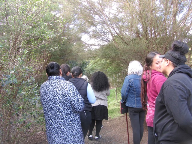 Marion then took the group on a walk through a portion of the CUE Haven ngahere so they could see a variety of plants in situ. Marian explained how the plants grow, how and why they are used and additional Rongoa lore.