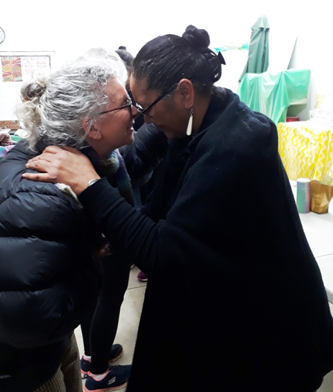 Rewana and Rita then opened the ceremony with a karanga and invited the manuhiri to approach the whare with the women leading the men.
