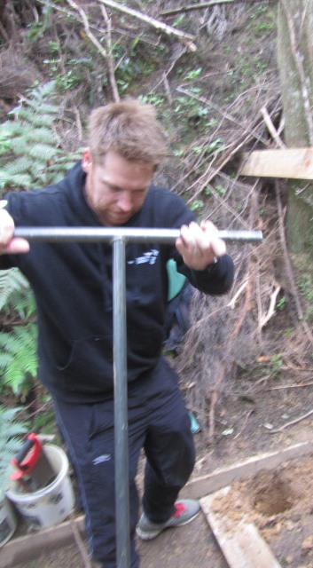 The team went to work digging the holes for the posts. Everyone took turns with the post hole borer.