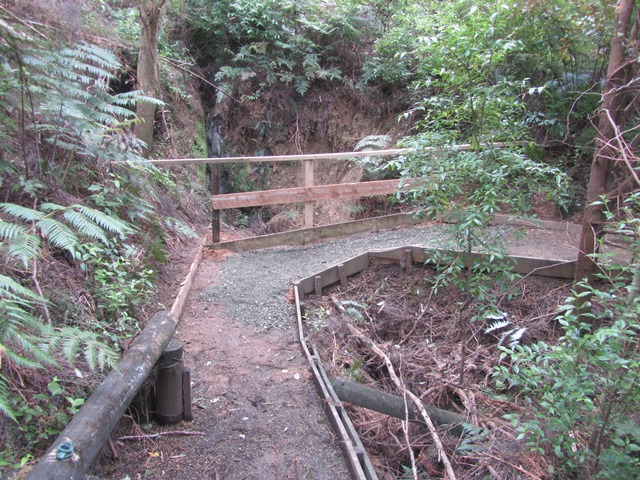 The top and middle rails were then nailed into place and the end result is a railing that looks great and is an excellent addition to the track that will provide future visitors a great lookout spot to enjoy the waterfall and glowworms.