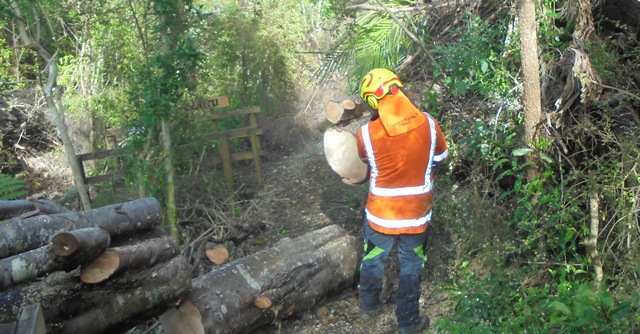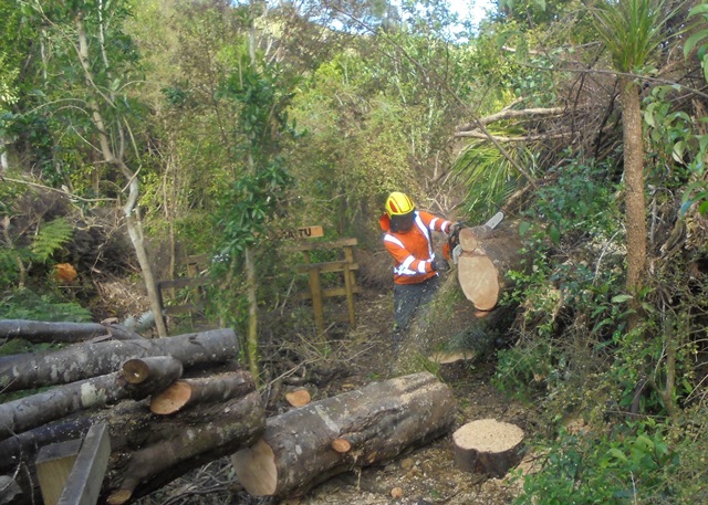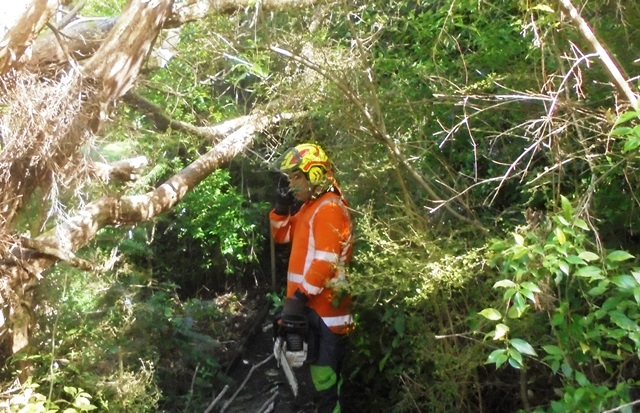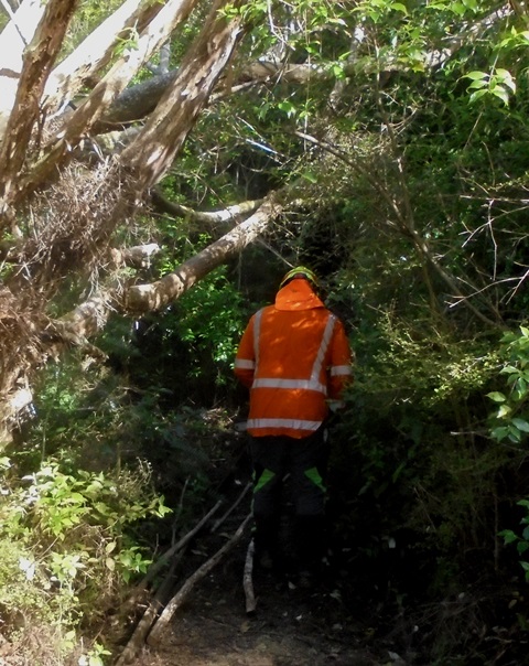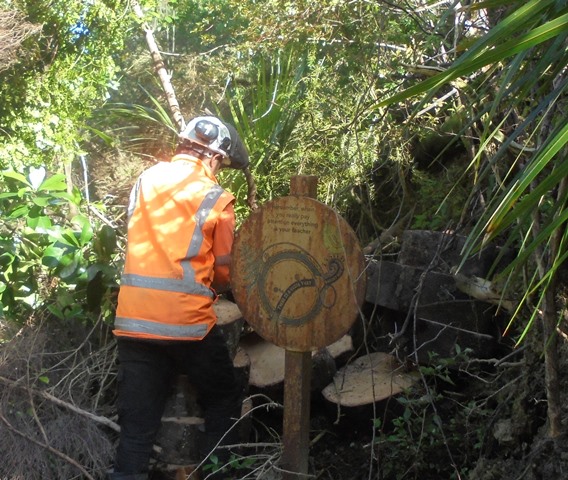 Paul felt that the challenges presented by the fallen trees would be a good training opportunity for some of the new Treescape staff and advised us he would try to set up a day for them to come out with him for a training exercise and clear the tracks of the fallen trees. Treescape arborists have been inundated with work as there has been so much damage from the cyclone throughout the North Island and then with the unseasonably wet weather we have had, it has been a challenge to schedule a time for the team to come out to CUE Haven.