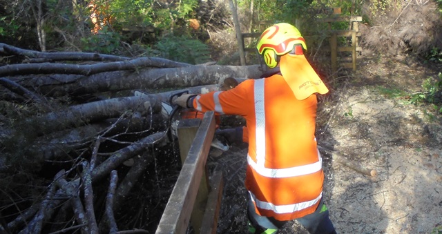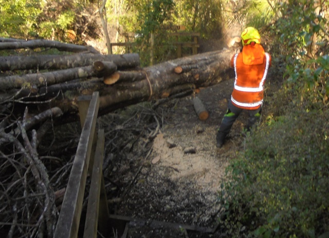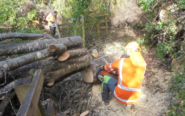 Paul arrived this morning to tackle the trees and Thomas and our bee keeper Richard, who also works at Treescape, assisted with the clearing the timber off the tracks.