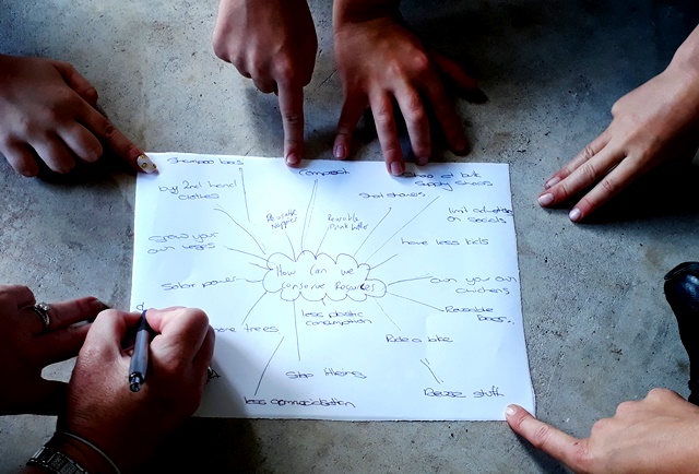 The adults in each group then led the students in a discussion about what they could do individually to reduce consumption, conserve resources and care for each other and our planet.