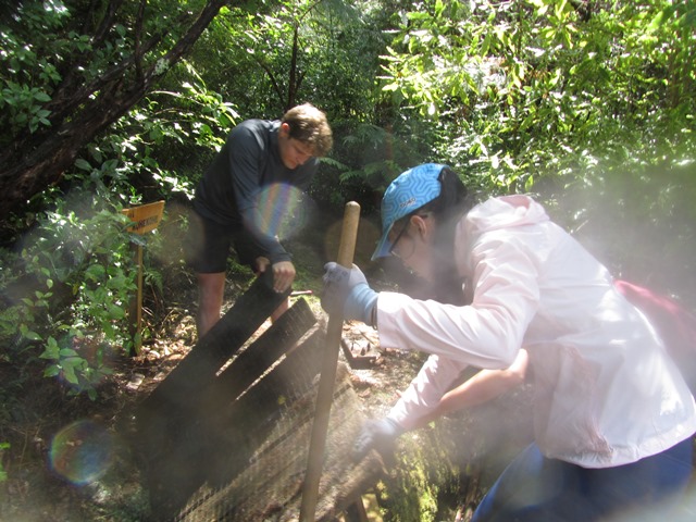 The other task the team tackled was to clear away overhanging vegetation from the Otakamaitu bridge so that visitors can get a better view of the pools.