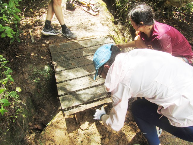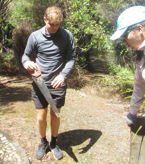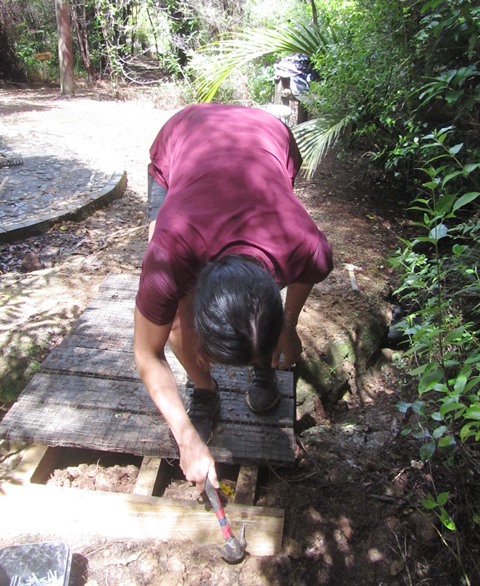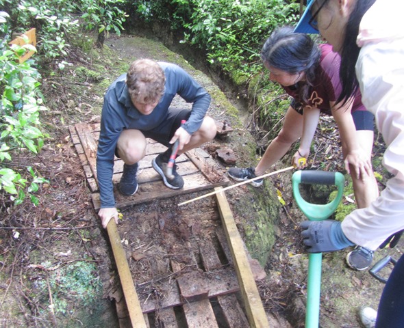 Alice, Katherine and Simon worked on some walking track improvements. A small bridge over a drainage ditch was starting to sag and we wanted to repair it before it got any worse.