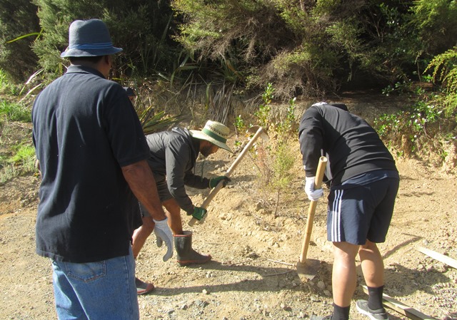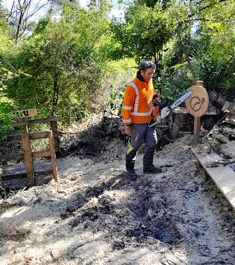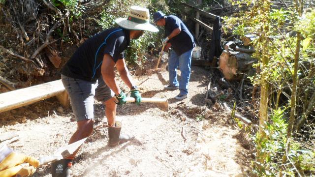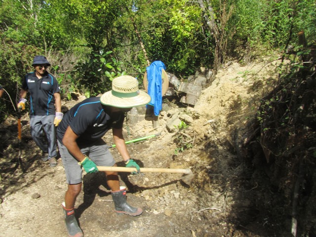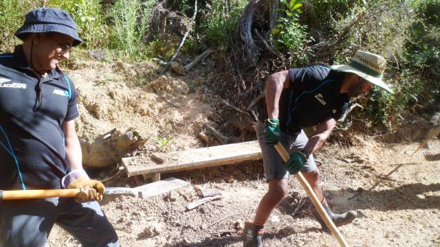 Tyerell’s team started off by reinstalling some signs which were buried by a big slip. Last year this same team had helped to recover the buried signs.