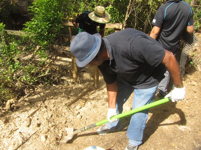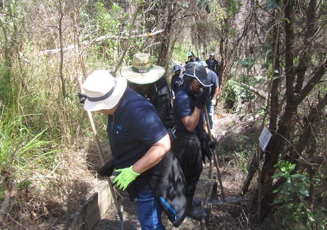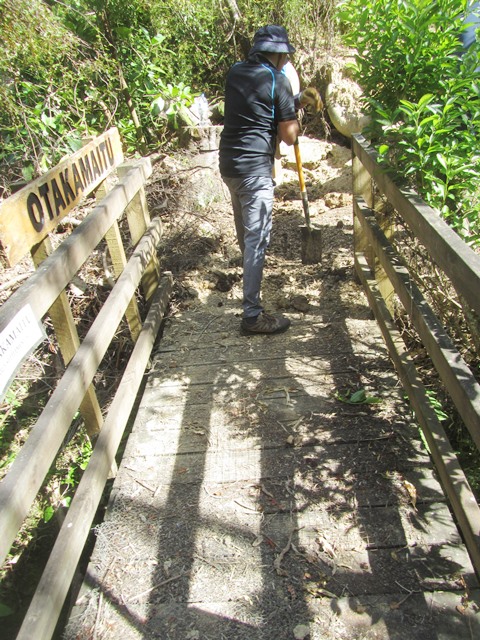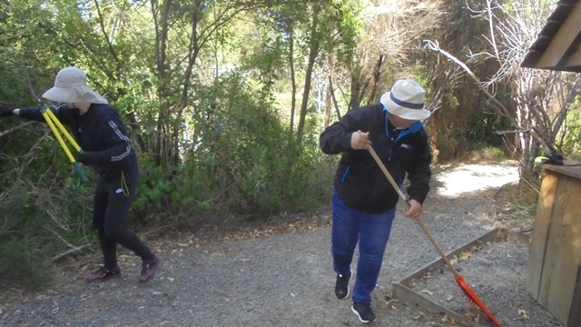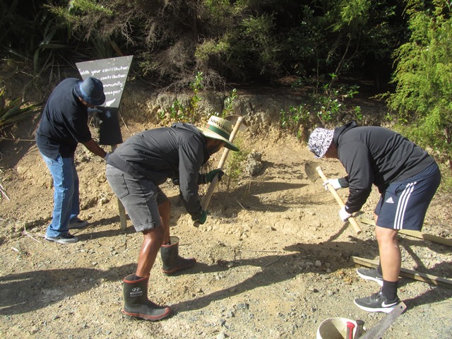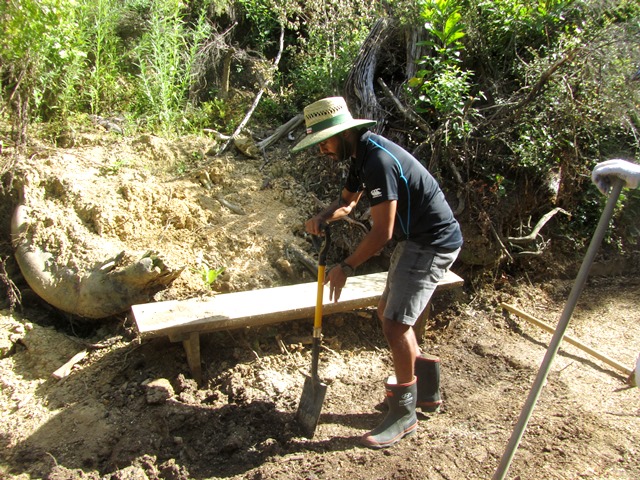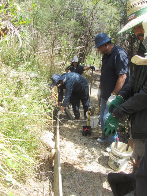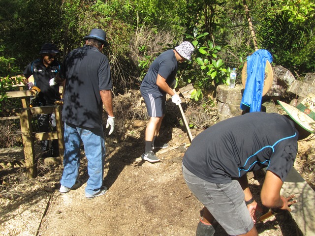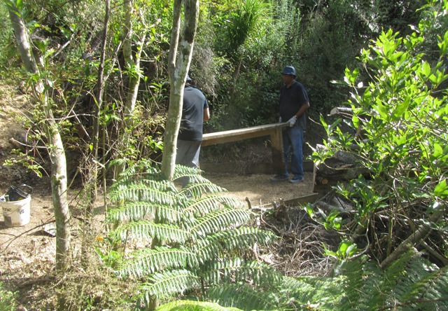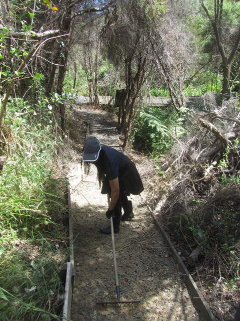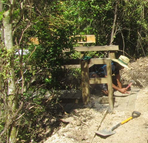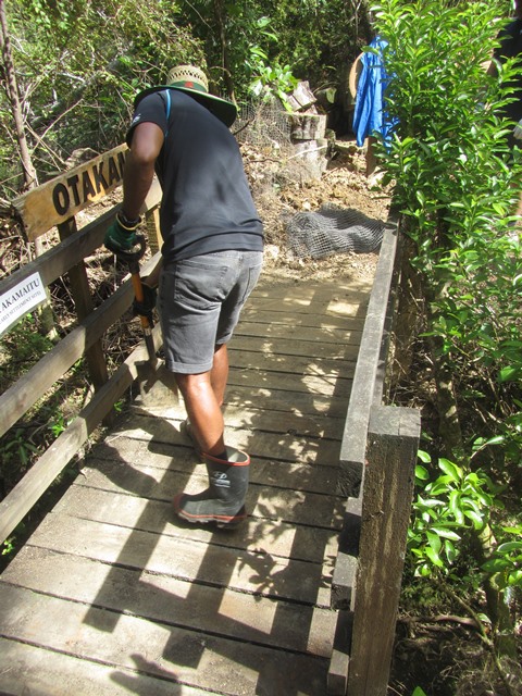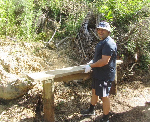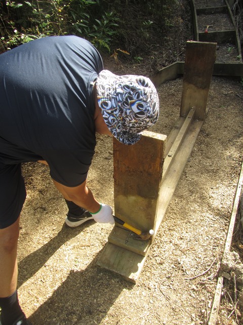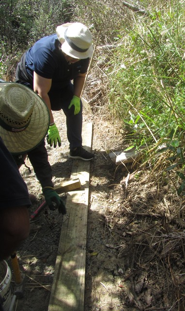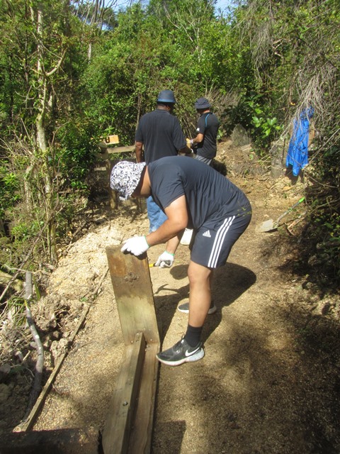 The last task the team tackled was fixing up some side boards near the start of the walking track. They dug out the old crooked side boards.