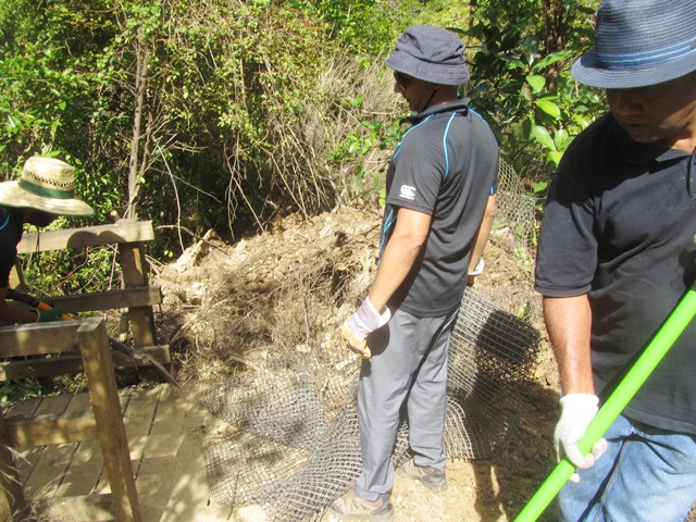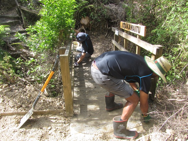 We put a layer of mesh on bridges and boardwalks to make them slip proof and the mesh on the bridge had been badly damaged. The team replaced it with new rubber mesh.