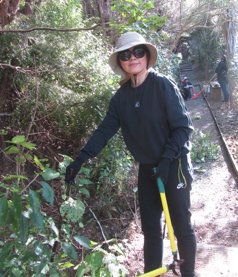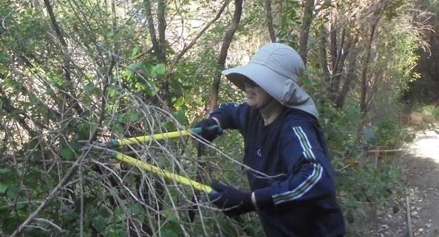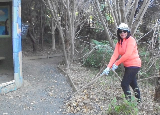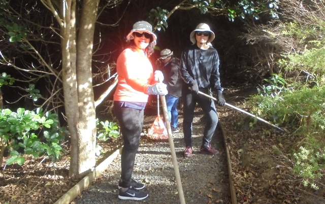 The remaining two teams helped out by trimming overhanging vegetation from the tracks and clearing off fallen branches and leaves. They started at the top of the property and worked down.