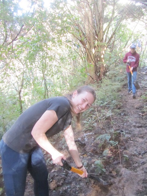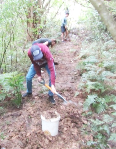 The team then went to work, with smaller groups tackling different sections. Most of the work involved clearing vegetation and then using spades to level the ground.