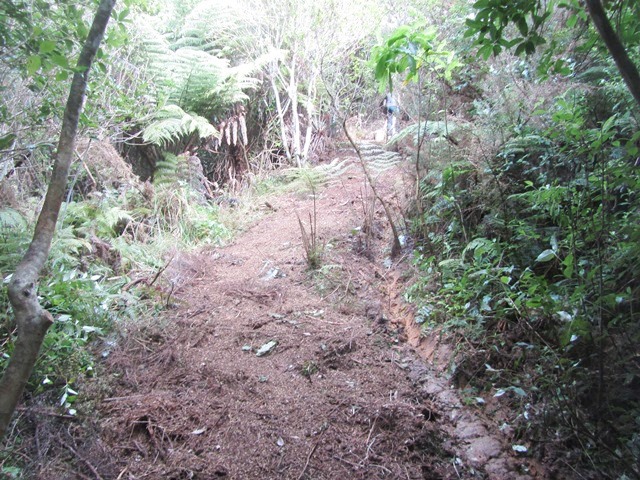 The area the track traverses is quite steep in sections and one section was very wet because of water flowing down slope across the track.