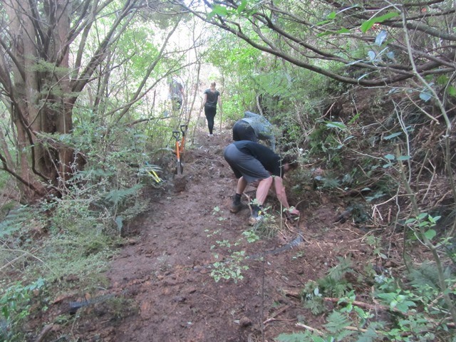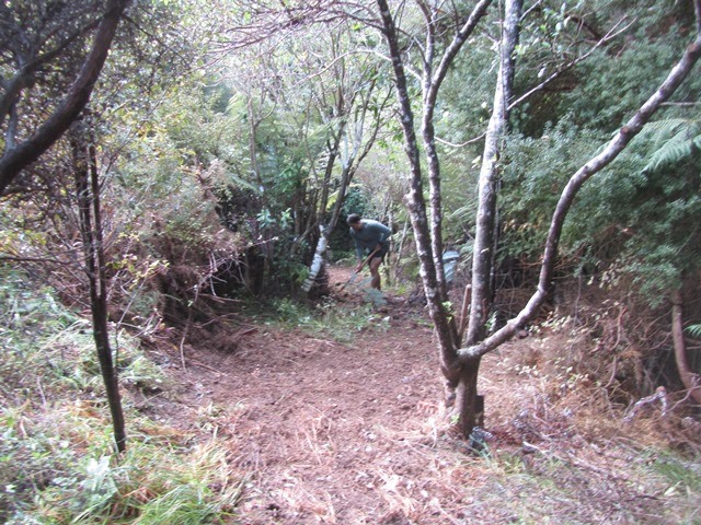 The team continued further down into the bush clearing the path for the track.