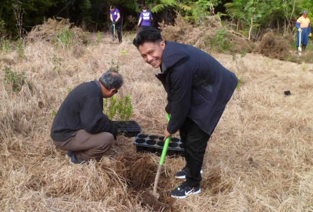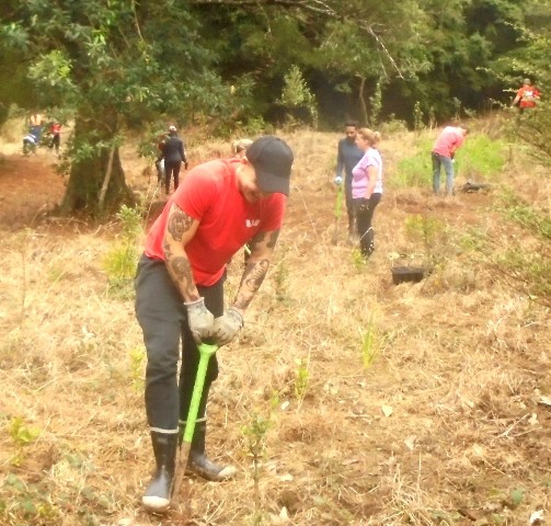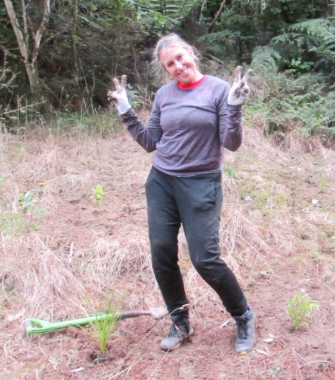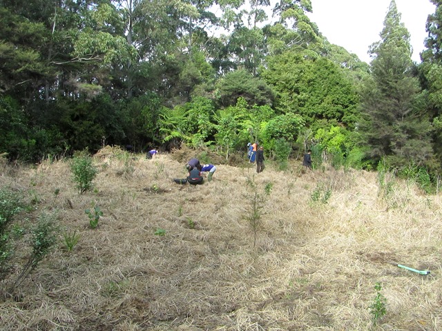 It was challenging planting because of the heavy cover of dead kikuyu but everyone kept smiling.