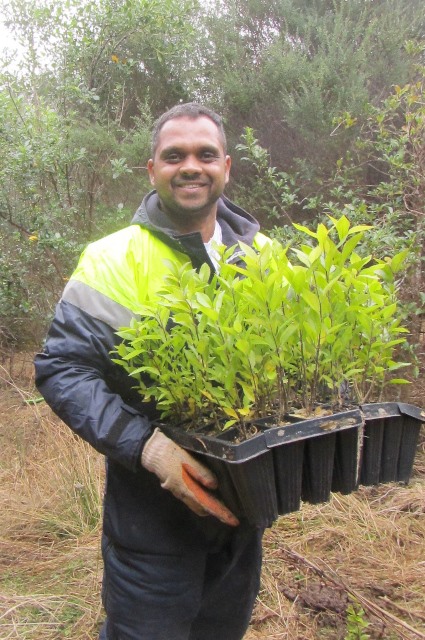 The Sri Sathya Sai Group is a spiritual organisation whose members make a commitment to community service The group have made many contributions to the CUE Haven restoration project over the years—assisting with planting, painting the nursery and walking track maintenance. Today seventeen members gave up their Sunday morning to help us with some restoration planting.