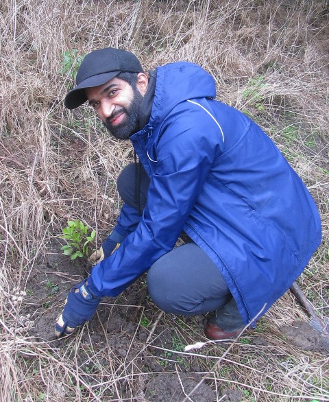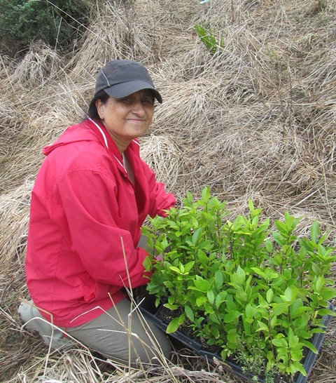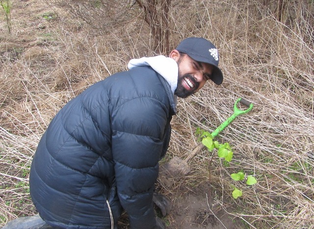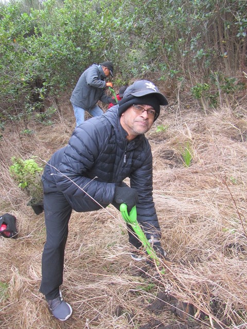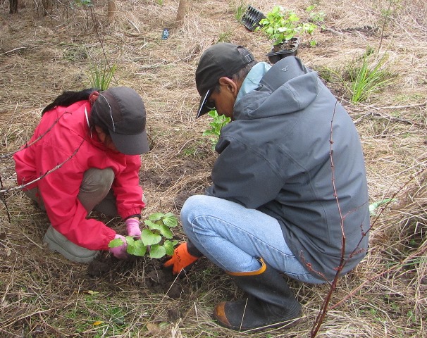 The group then broke up into teams, spread out throughout the planting site and went to work.