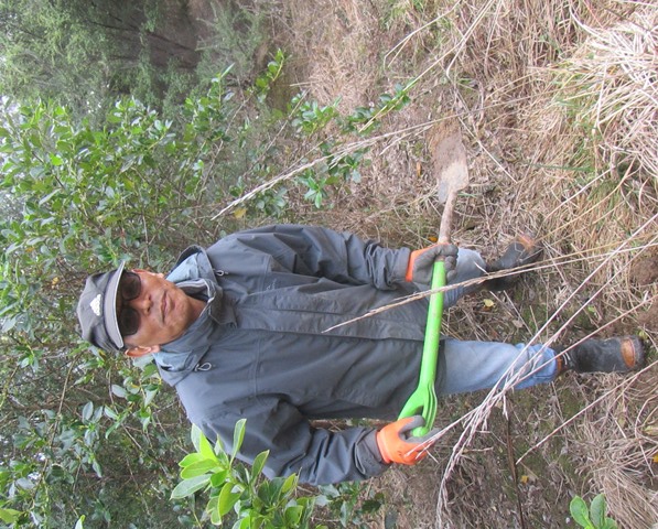 We had earlier prepped the planting areas by spraying out the kikuyu grass that had grown over the areas and which was preventing trees from getting established.