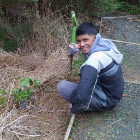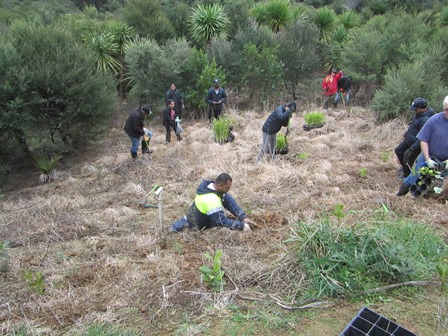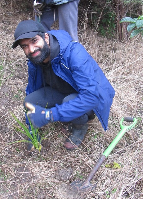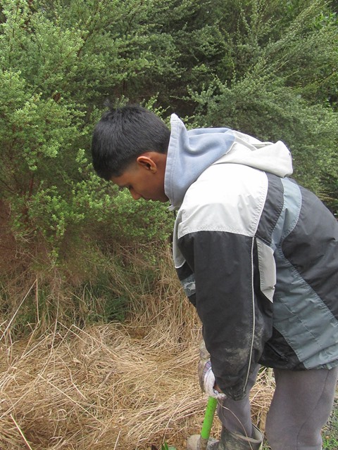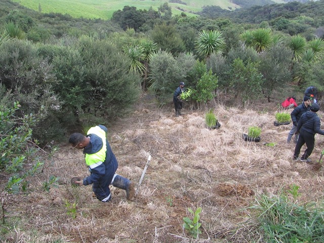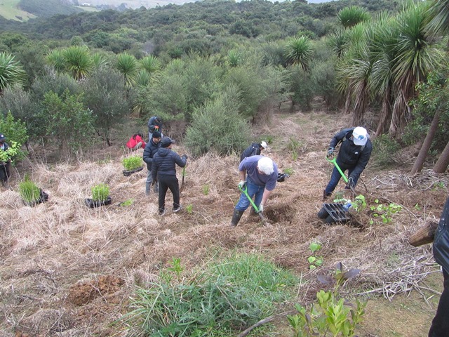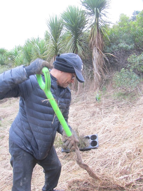 One challenge the group faced was clearing away thick dead kikuyu grass before they could plant.