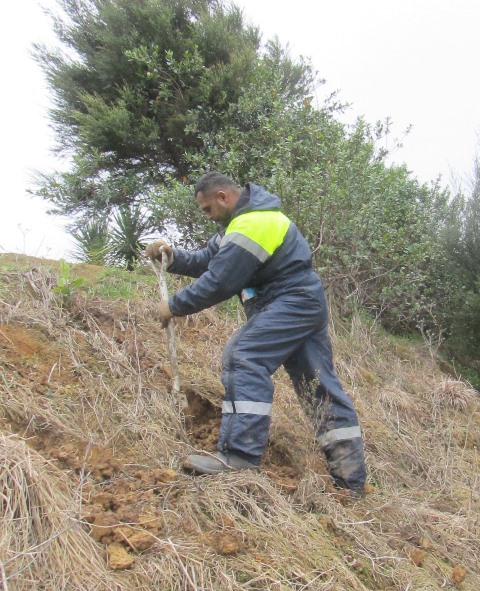 The plan was to plant pioneer trees in two areas. The first is an area that had initially been planted in 2013 but needed to have some gaps filled in to provide a canopy for bigger trees. The other area was where the trees cover had been lost in the heavy rainstorms in 2023 that caused slips on some of the steep slopes around the property.