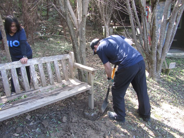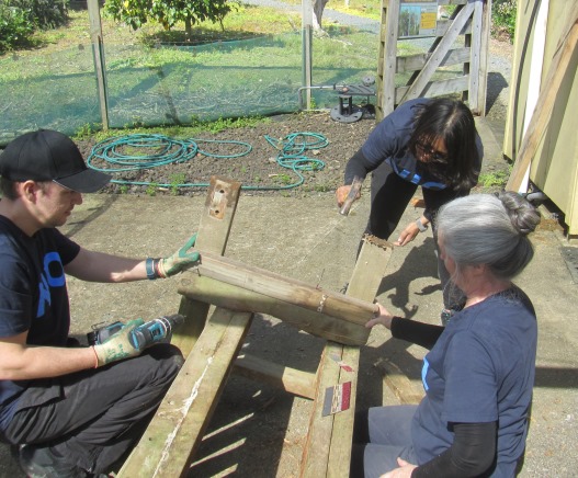 We broke into two teams. One team worked on repairing a bench in the bush that had some rotten boards and the other team worked to fix a small boardwalk that that buckled. Both tasks were challenging because they involved coming up with innovative solutions as well as some heavy lifting.