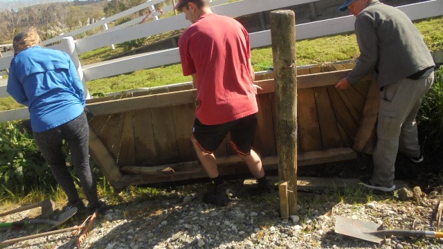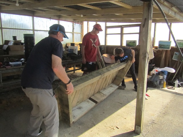 They decided that they needed to have a look at the framework so the first step was the challenge of lifting up the boardwalk and turning it over.