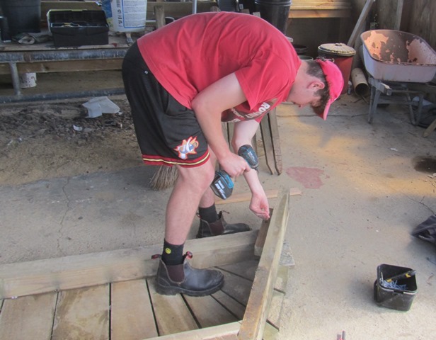 Once the old boards were removed, they planned the best way to install replacement boards. As a first step they decided to reinforce the side supporting boards.