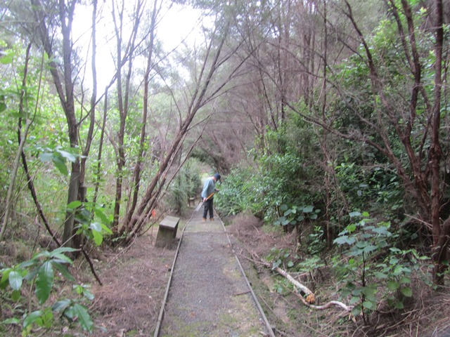 We then walked down to the work site. The plan for the day was to work on fixing a drainage problem on a long section of track that runs downhill. Heavy rains over the past year had overwhelmed the drains and caused a series of washouts on the track.