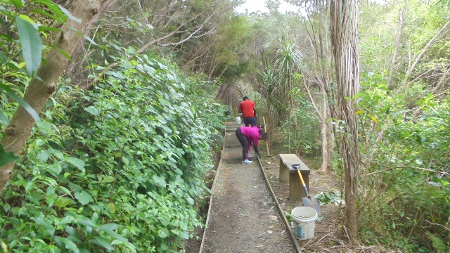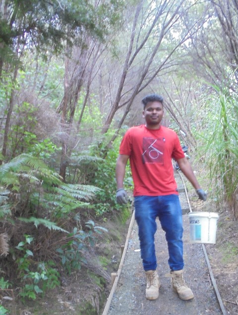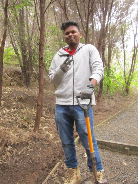 Today, one of Beca’s geotechnical engineers, Sangita, who had been part of the team involved in the soil analysis at the view platform site, brought along some of her colleagues from the Geotechnical Laboratory and Instrumentation Monitoring department to help with some walking track maintenance.