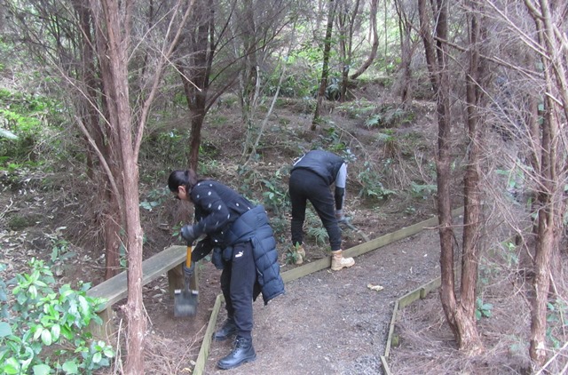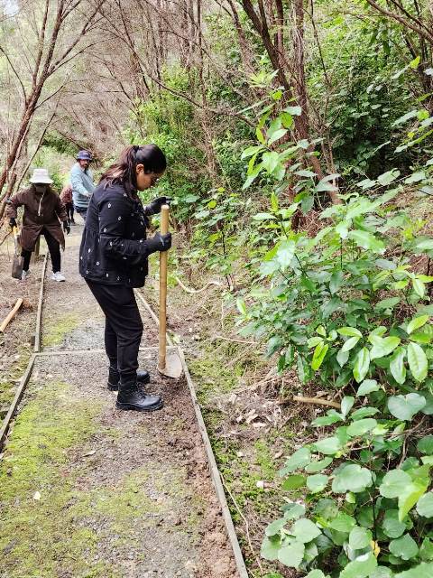 Today, one of Beca’s geotechnical engineers, Sangita, who had been part of the team involved in the soil analysis at the view platform site, brought along some of her colleagues from the Geotechnical Laboratory and Instrumentation Monitoring department to help with some walking track maintenance.