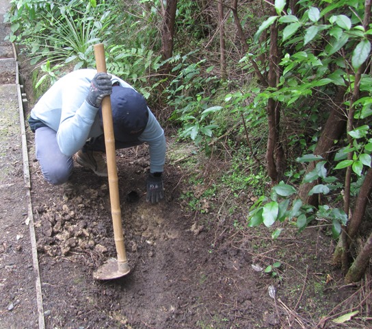 We then walked down to the work site. The plan for the day was to work on fixing a drainage problem on a long section of track that runs downhill. Heavy rains over the past year had overwhelmed the drains and caused a series of washouts on the track.