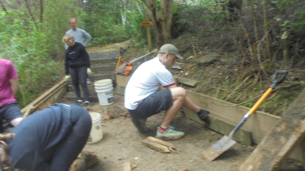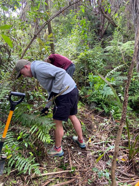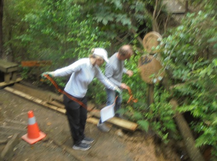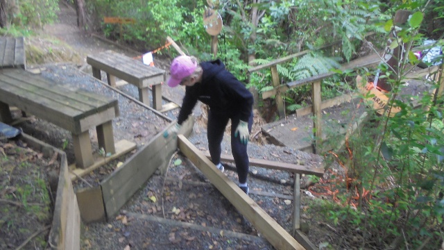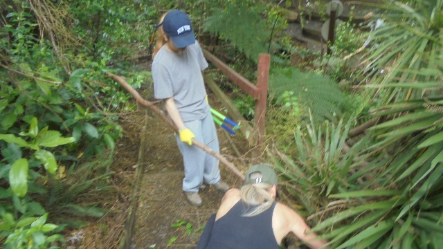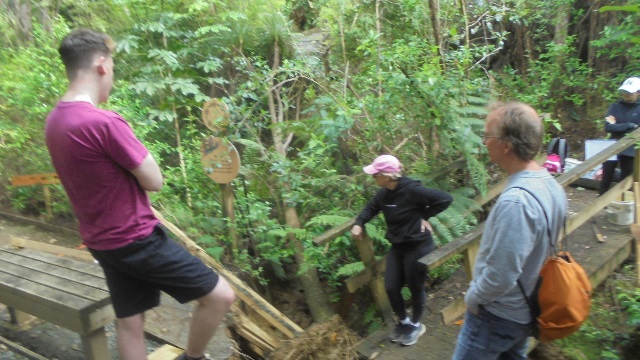 The plan for the day was to do as much as possible to restore the Taraire and Riroriro tracks after the bridge connecting them fell down.