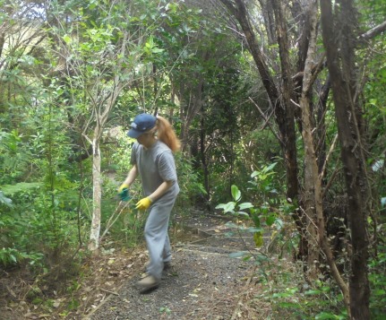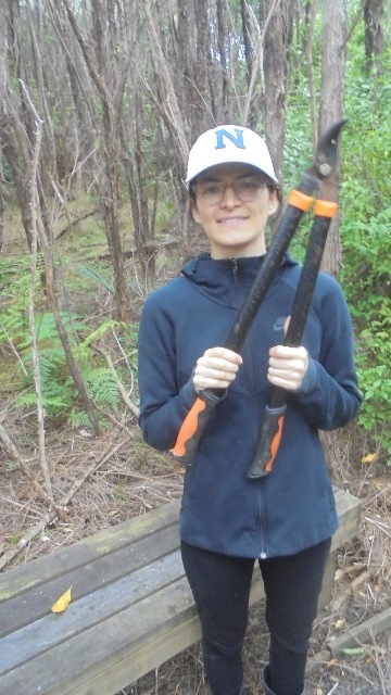 When the ti kouka tree that brought down the bridge fell, it also pulled down a lot of other smaller trees as well and they were blocking portions of the tracks. Some team members tackled the job of clearing away vegetation from the tracks.