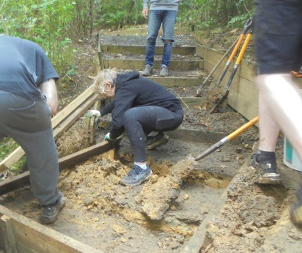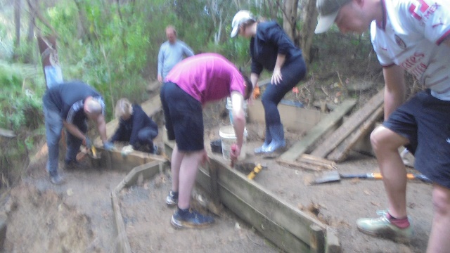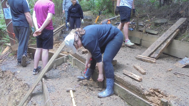 It didn’t take long for the team to create a straight and level track. Future teams will finish it off with side boards, metal and a small bridge across the stream.