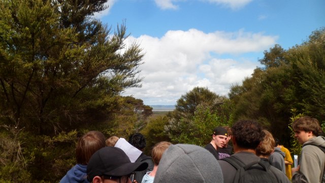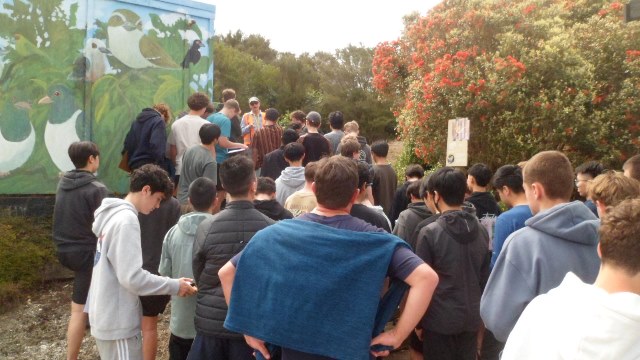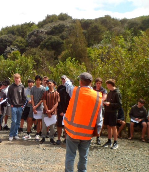 For the field trip, the students were broken into two groups—one visited CUE Haven while the other attended a session on water quality monitoring and management. The groups then switched so each group did both activities. The combined class then did a boat cruise on the Kaipara Harbour.