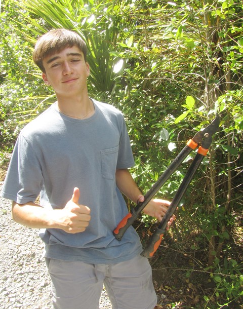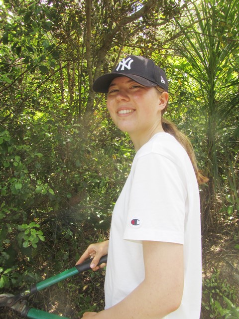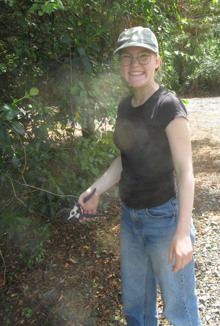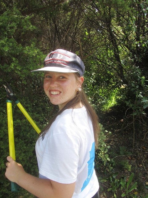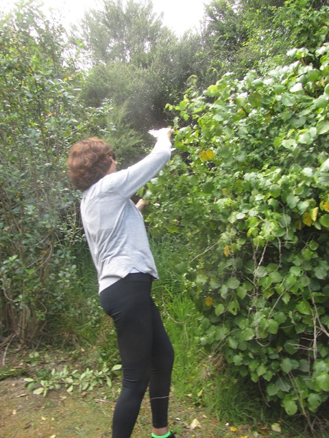 Sue helped out by tackling some troublesome vines growing over some of the trees.