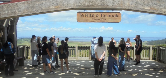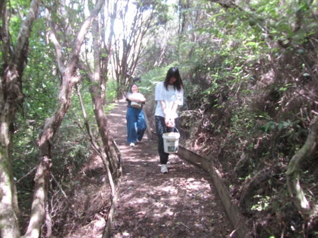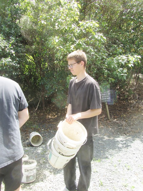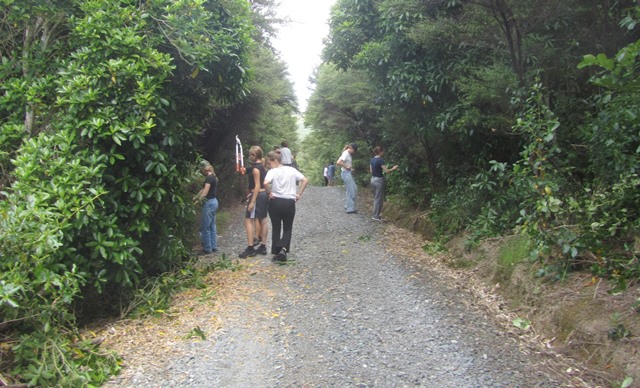 Because of the number of students, we had to drive up to the work site in two groups. Thomas took one group up to Te Rite o Taranaki to wait while be brought up the second group.