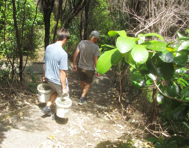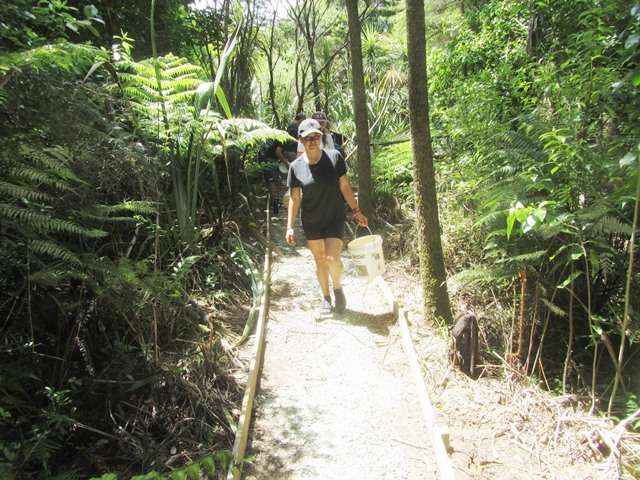 The buckets were loaded onto the truck and then driven to the end of the Taraire track where they were unloaded and carried down to the new track sections.