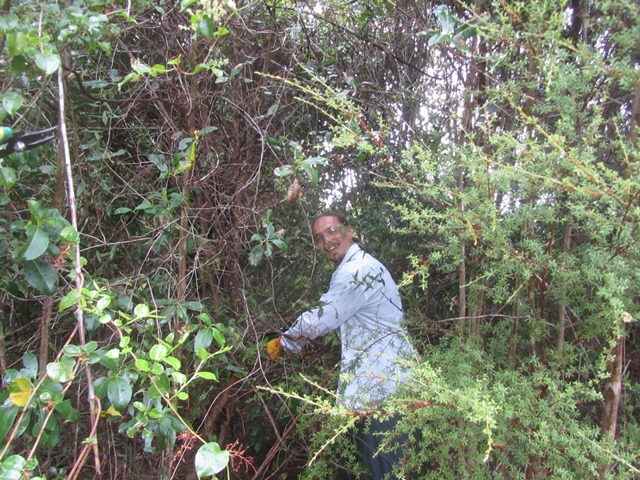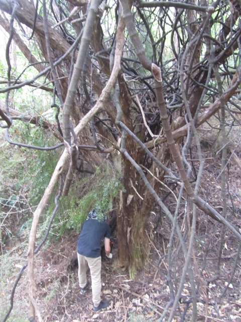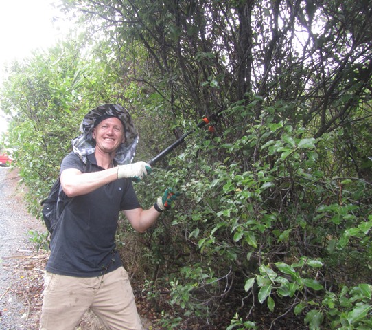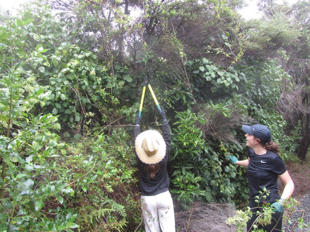 The plan for the day was to work on clearing some large areas of muehlenbeckia australis that was growing over trees. The meulenbeckia is a native vine that grows up along the edges of regenerating forests and unfortunately it will completely cover and kill small trees unless it is controlled.