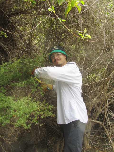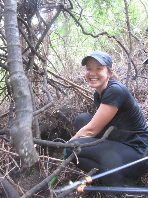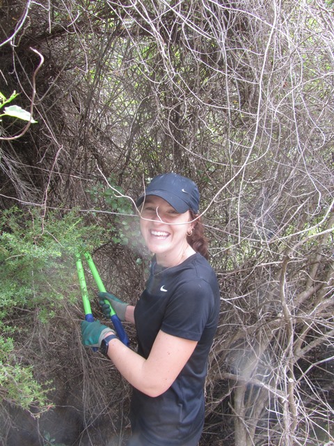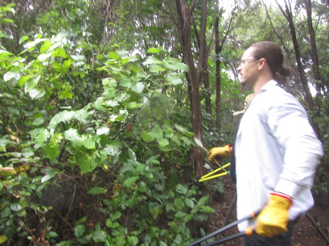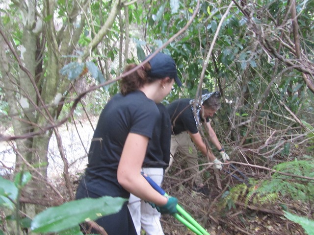 We drove up to the top of the property and worked down. The team quickly became adept at identifying the plant and going after it with loppers.